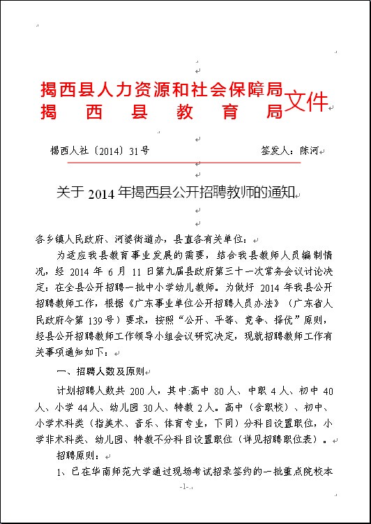 您的位置:網(wǎng)站首頁 > 職場資訊 > 公務(wù)員專欄 > 報名招考信息 > 2014年揭西縣公開招聘教師的通知